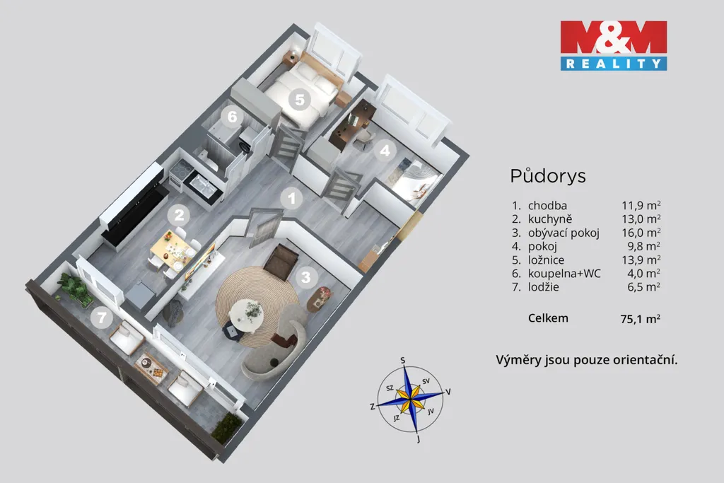 K bytu náleží zasklená lodžie, která nabízí příjemné posezení s výhledem na okolní zeleň. Celková užitná plocha bytu je 68 m² a dispozičně zahrnuje čtyři místnosti.