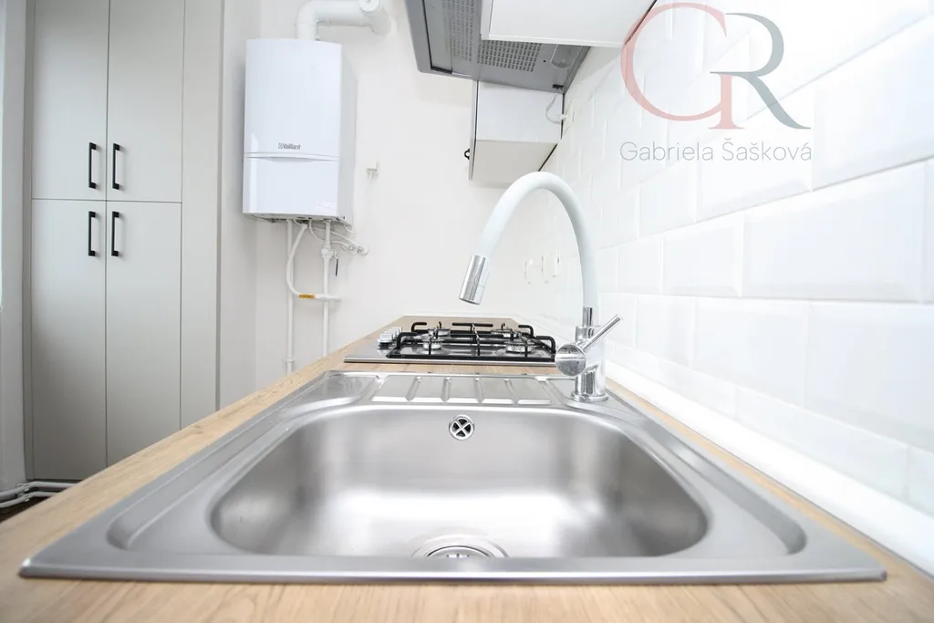 Vytápění bytu i ohřev vody je zajištěn plynovým kotlem.