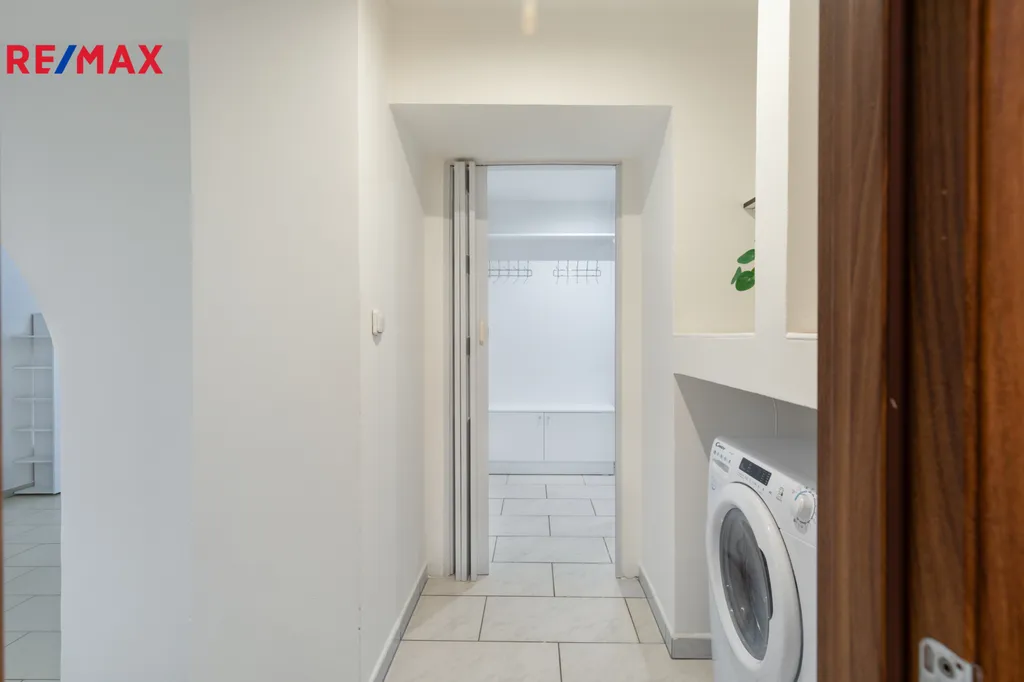 ✅ Předsíň - další velké úložné prostory - šatní skříň s posuvnými dveřmi, další dvě rohové kombinované skříně - police/ tyč, pračka