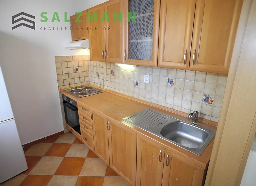 - kuchyně (5m2, dlažba) - rohová kuchyňská linka, lednice s mrazákem, elektrický sporák s troubou