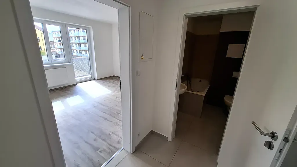 Nabízíme k pronájmu byt 1kk o velikosti 40m2 + balkon, který se nachází ve třetím nadzemním podlaží novostavby bytového domu s výtahem v Železniční ulici.