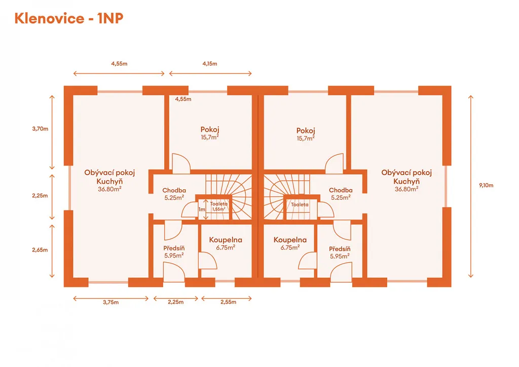 Nabízíme k prodeji dva moderní rodinné domy (dvojdům) v klidné slepé ulici obce Klenovice u Soběslavi. Jedná se o novostavby realizované rodinnou stavební firmou, původně plánované pro vlastní bydlení, s důrazem na kvalitní provedení, promyšlené dispozice a dlouhodobou hodnotu nemovitosti. Prodej je možný pouze jako celek, což z této nabídky činí zajímavou příležitost nejen pro vícegenerační bydlení, ale i pro investiční záměr.