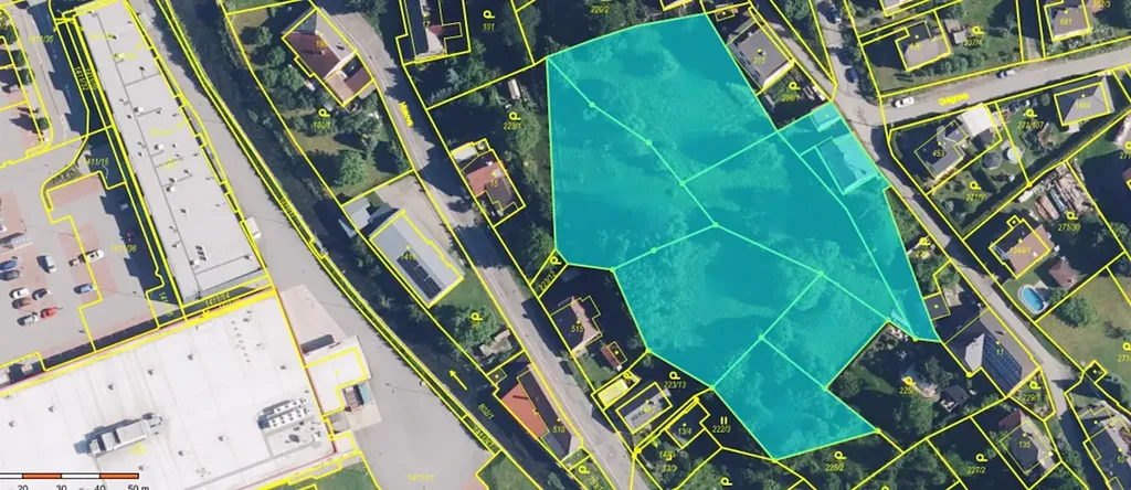 Pozemky o celkové výměře 6890 m2 jsou potencionálně vhodné pro několik rodinných domů i řadovou zástavbu. Již na pozemcích stojí starší dům s garáží, který je též součástí prodeje a kupní ceny. Ohledně výše výnosnosti pro vaši kalkulaci je možné počítat s výstavbou 6-7 řadových domů, případně 4 samostatných domů. Dům, který již na pozemcích stojí je dvoupatrový o zastavěné ploše cca 100 m2 a je v původním stavu, avšak ne v demoličním, tudíž by bylo možné ho zrekonstruovat a též přidat do projektu. Ohledně příjezdové cesty na pozemky by bylo pravděpodobně nejvíce vhodné použít prostor, kde se nyní nachází garáž vedle již stojícího domu, sbouráním této garáže vznikne prostor široký cca 9 m.