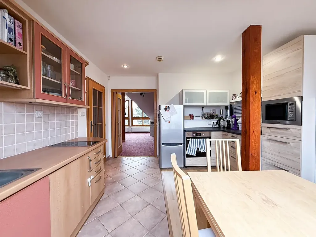 Nabízíme k pronájmu mezonetový byt o dispozici 2+1 s podlahovou plochou 98 m², který se nachází v klidném domě s pouze dvěma bytovými jednotkami.Byt nabízí vstupní chodbu, koupelnu se sprchovým koutem, kuchyň s jídelním prostorem a velký obývací pokoj. V horním patře se nachází samostatná ložnice, kterou lze využít také jako pracovnu. Součástí pronájmu je sklep o výměře 4 m². Byt se pronajímá nevybavený.Parkování je možné na modrých zónách přímo před domem.Lokalita nabízí výjimečně klidné bydlení v bezprostřední blízkosti oblíbeného parku Ladronka, který je ideálním místem pro sport, procházky i relax. Oblast má dobré dopravní spojení prostřednictvím tramvajových a autobusových linek do dalších částí města.Byt je k nastěhování od 16. 2. 2026.