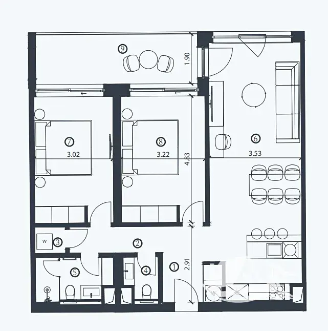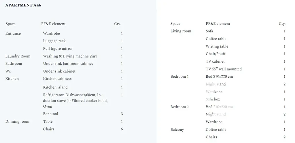 Celková plocha jednotky činí 91,8 m², k níž náleží prostorná terasa o velikosti 11,20 m² s úchvatným výhledem na Jaderské moře. Interiér je zařízen moderním a vkusným nábytkem, který podtrhuje kvalitu a styl celého prostoru.