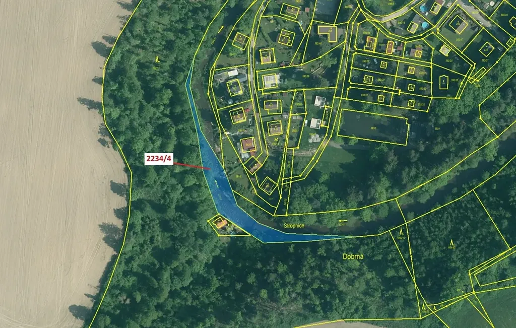 Vodní plocha o výměře 1687 m2, parcelní číslo 2234/4, podíl 1/1, katastrální území Dolní Stropnice, obec Římov, obec s rozšířenou působností České Budějovice, okres České Budějovice, Jihočeský kraj.
