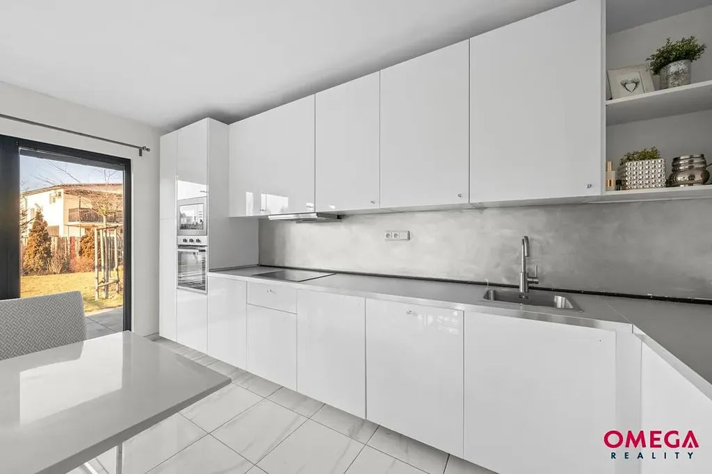 Nabízíme moderní, přízemní, dvougenerační dům kolaudovaný v roce 2021, situovaný na vlastním pozemku o rozloze 1 005 m², s užitnou plochou 185 m² a zastavěnou plochou 212 m². Dům je koncipován jako dvě plnohodnotné bytové jednotky 4+kk se samostatnými vchody, přičemž každá nabízí tři ložnice, prostorný obývací pokoj s kuchyní a jídelnou s přímým vstupem na zahradu, koupelnu a WC. Jednotky lze jednoduchým propojením využívat i jako jeden komfortní rodinný dům o velkorysé ploše 185 m². Interiér je laděn do nadčasových světlých tónů, nechybí luxusní kuchyně se spotřebiči, podlahové vytápění, krbová kamna a velká okna orientovaná do zahrady, která zajišťují dostatek denního světla a příjemnou atmosféru. Součástí domu je také půdní prostor o velikosti 25 m² a architektem navržená zahrada s hustou zelení, poskytující naprosté soukromí. IS – elektřina, obecní vodovod, kanalizace. Dům je osazen solárními panely.