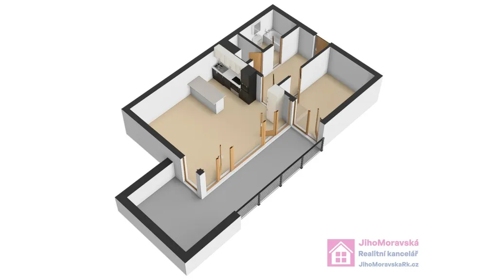 Dispozice bytu: předsíň, koupelna (vana) s WC, technická místnost (pračka), pokoj, chodba, pokoj s kuchyňským koutem, terasa (do vnitrobloku bytového domu). Půdorys bytu včetně terasy naleznete ve fotogalerii.
