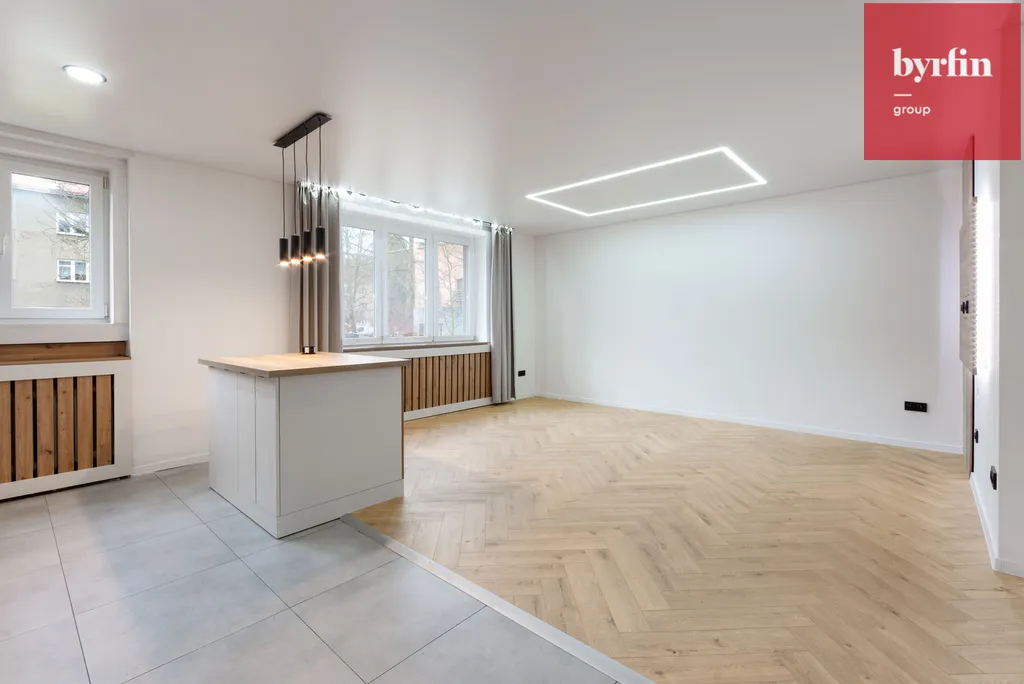 Bytová jednotka prošla zdařilou a citlivě řešenou kompletní rekonstrukcí, při které byl kladen důraz detail a nadčasový vzhled. Celková podlahová plocha činí 72,16 m², užitná plocha bytu je 66 m². K bytu náleží také prostorný zděný sklep o výměře cca 4 m².