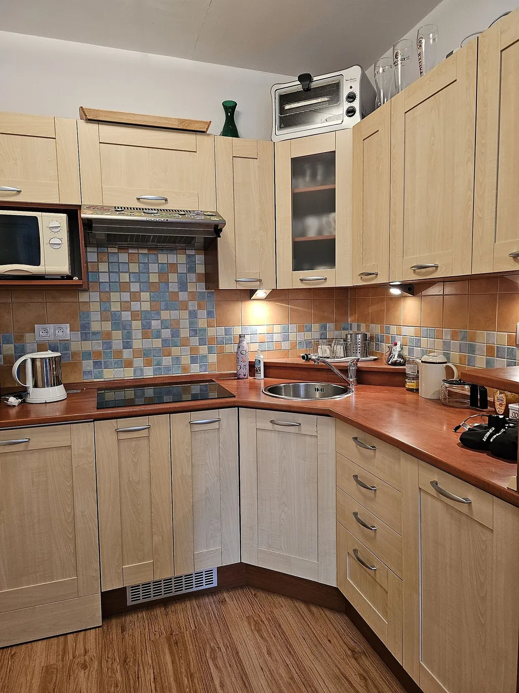 V obývacím pokoji se nachází kuchyňský kout s moderní linkou s vestavěnými spotřebiči jako jsou elektrická varná deska, myčka, digestoř. Je zde také lednice s mrazákem. Dalším vybavením je jídelní stůl se židlemi a nechybí ani rozkládací rohová sedací souprava, konferenční stůl a televize. V ložnici, do které se prochází z obývacího pokoje je palanda a manželská postel. Koupelna se sprchovým koutem, umyvadlem se skříňkou, zrcadlem a toaletou je vybavena pračkou a koupelnovým nábytkem. Ve vstupní chodbě je prostorná šatna, kde je možné kromě oblečení uložení např. lyžařských potřeb atd. Podlahovou krytinou v bytě je laminátová plovoucí podlaha a dlažba. Byt je útulný, barevně příjemně laděný a pečlivě udržovaný v pořádku. Celý je dům je udržovaný v čistotě. Teplo a ohřev vody zajišťuje centrální plynová kotelna. K bytu náleží sklepní koje o výměře cca 3,7 m2.