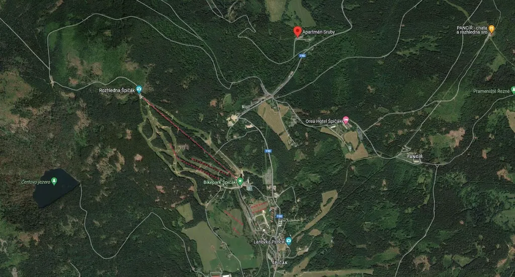 Byt se nachází ve druhém nadzemním podlaží typického horského domu na klidném místě zvané Sruby nedaleko Špičáckého sedla. Byt je dispozičně rozdělen na obývací místnost s kuchyňským koutem, ložnici a sociální zařízení. Předností je klidné místo s dobrým přístupem po asfaltové komunikaci, v bytě pak velká šatna ve vstupní předsíni, výtah v domě a prostorný zděny sklep v přízemí domu. Parkování je možné přímo před domem v uzavřeném areálu za vjezdovou závorou.