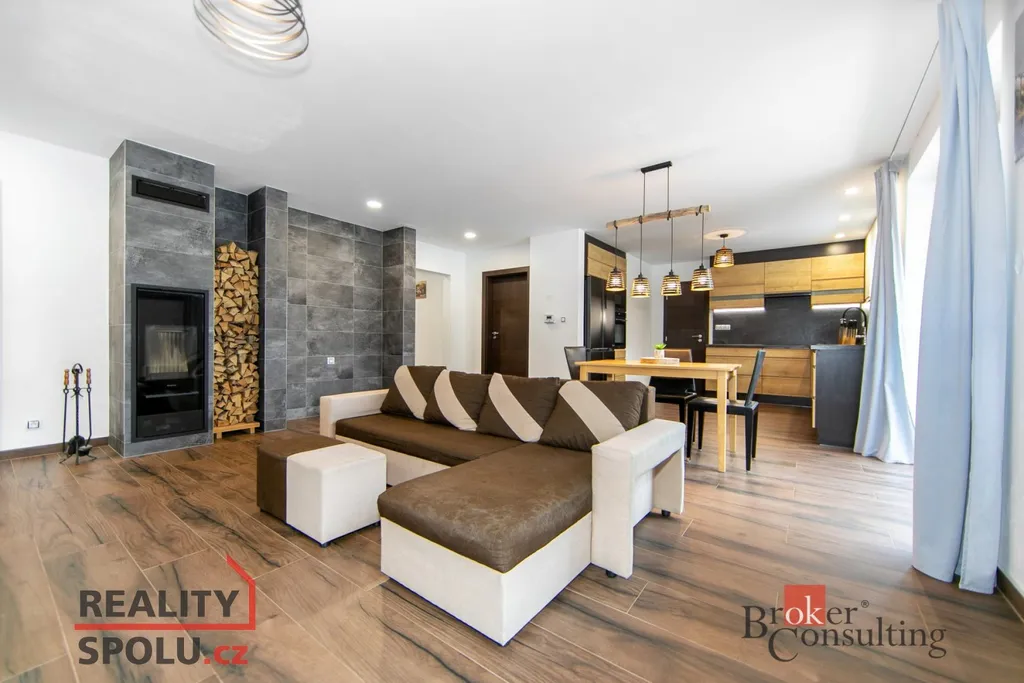 Dominantou domu je světlý obývací prostor propojený s kuchyňským koutem, který vytváří příjemné místo pro společné chvíle i návštěvy. K dispozici jsou čtyři samostatné pokoje, koupelna, WC a technické zázemí.