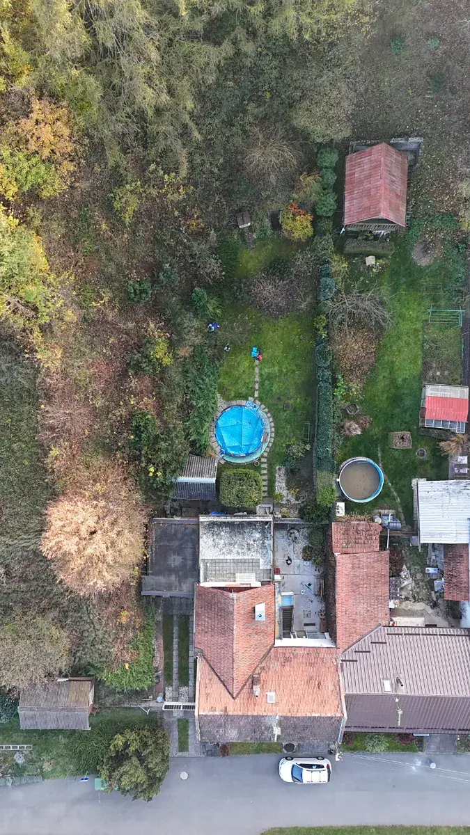 Na zahradě se nachází zapuštěný kruhový bazén a trvalé porosty.