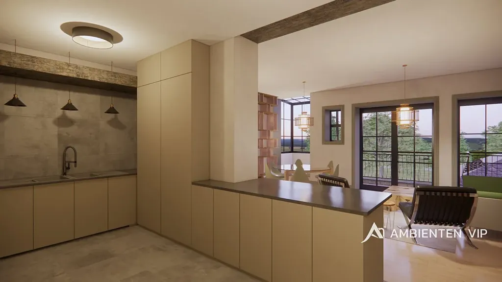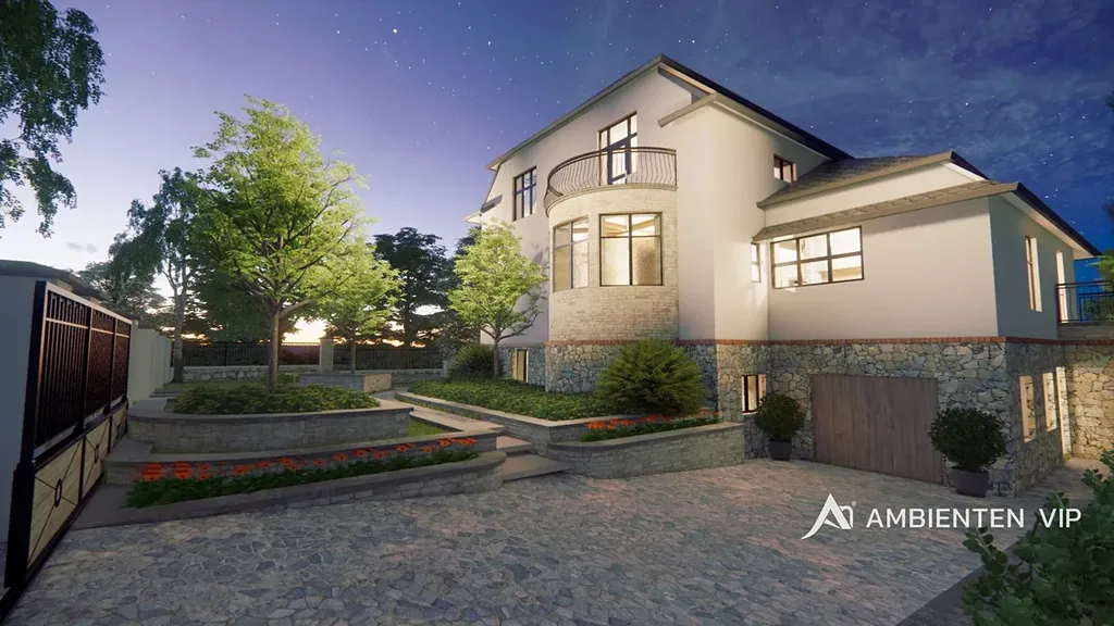 Architektonická studie navrhuje prémiovou rezidenci odpovídající náročným požadavkům současného bydlení. V 1. PP je plánovaná garáž, vinný sklep, pokoj pro hosty s vlastní koupelnou, společenská místnost a technické zázemí. V 1. NP se počítá s prostornou kuchyní propojenou s obývacím pokojem o velikosti 41 m² s přímým vstupem na rozlehlou terasu orientovanou do zahrady, dále s místností pro fitness, samostatným WC a hlavní ložnicí (21 m²) s vlastní koupelnou a šatnou. Ve 2. NP projekt počítá se dvěma dětskými pokoji (23 m² a 22 m²), pracovnou či třetím dětským pokojem (18 m²), samostatným WC, koupelnou, skladem a dvěma balkóny. Součástí návrhu je také krásná zahrada, bazén a venkovní kuchyně s posezením.