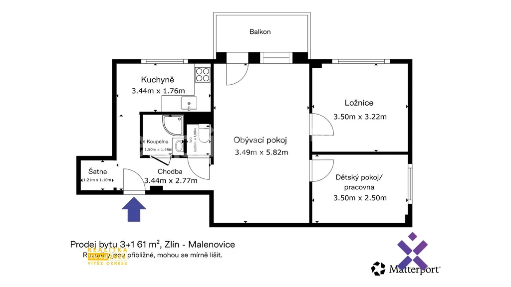 Kompletně zrekonstruovaný byt 3+1 s balkonem | JV orientace | Malenovice u Zlína | 15 minut do centra Zlína | 5 minut na dálnici