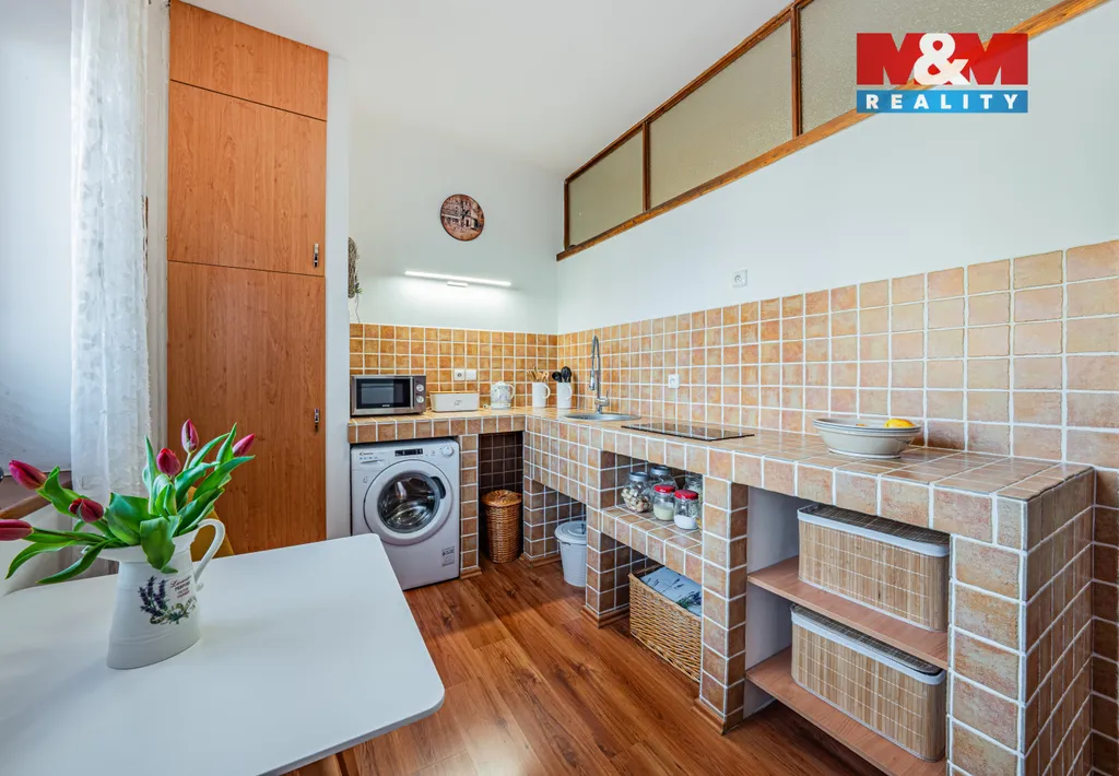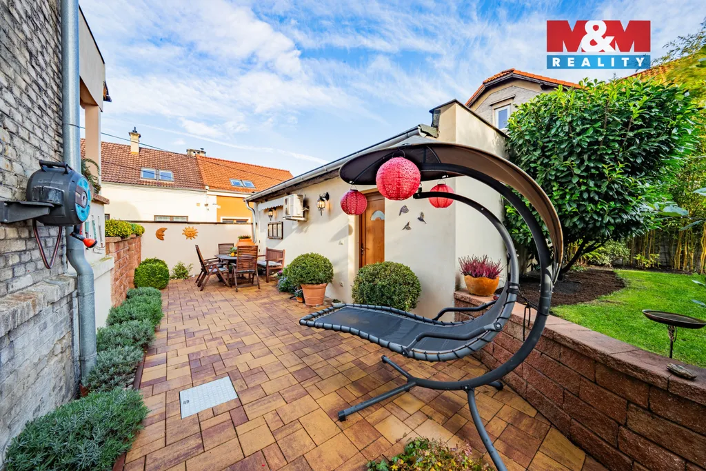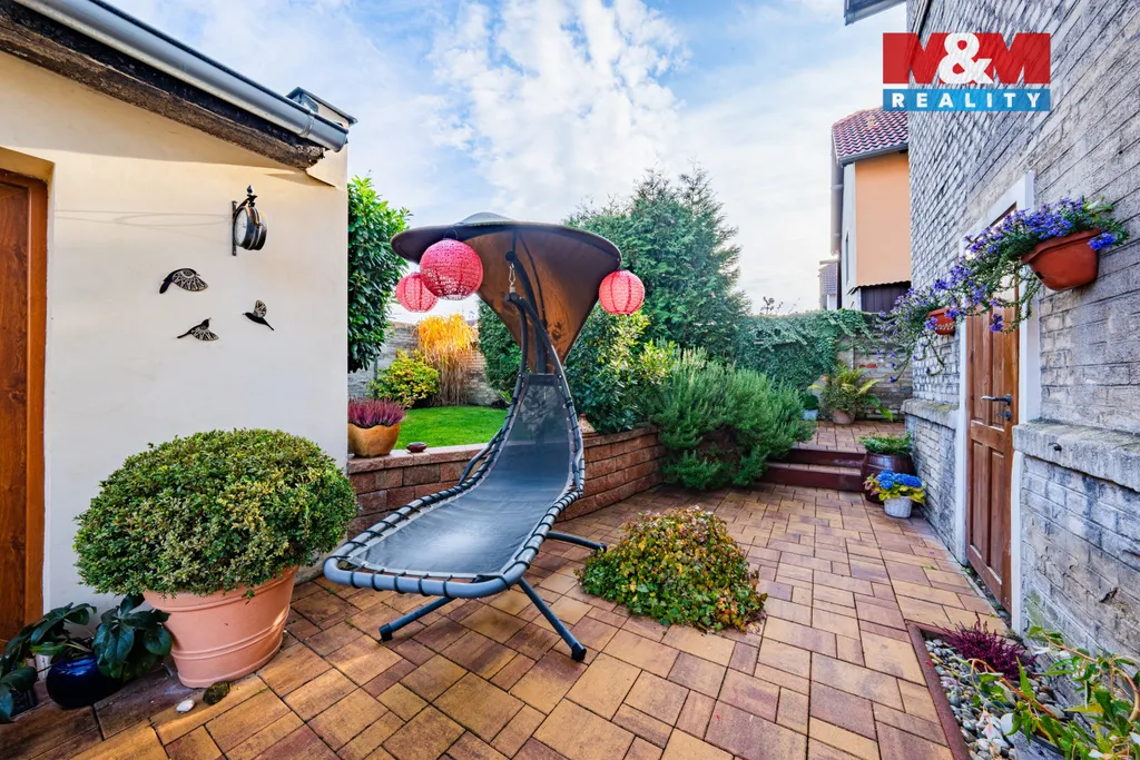 Výhodou je parkování ve dvoře a u domu. Okrasná zahrádka s posezením přispívá k útulné atmosféře.