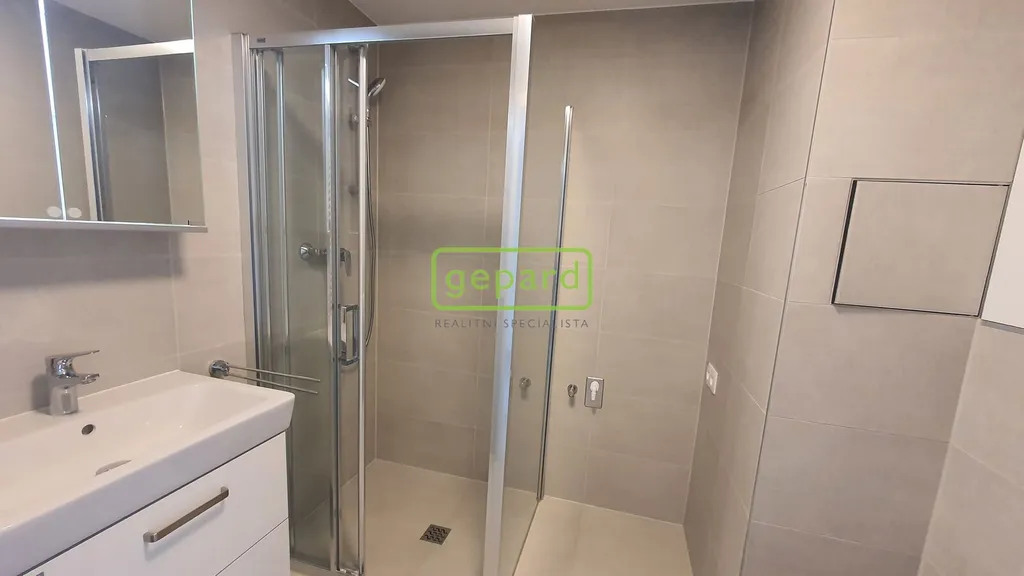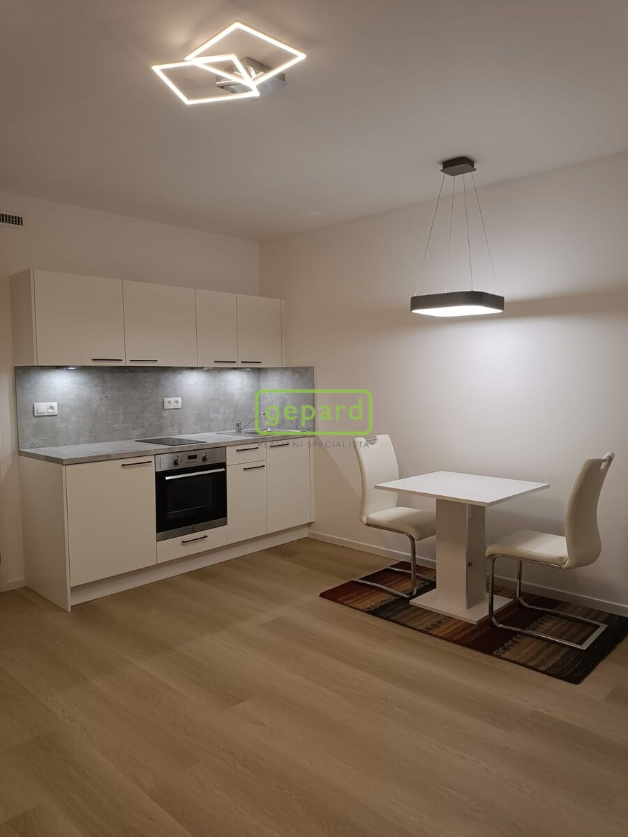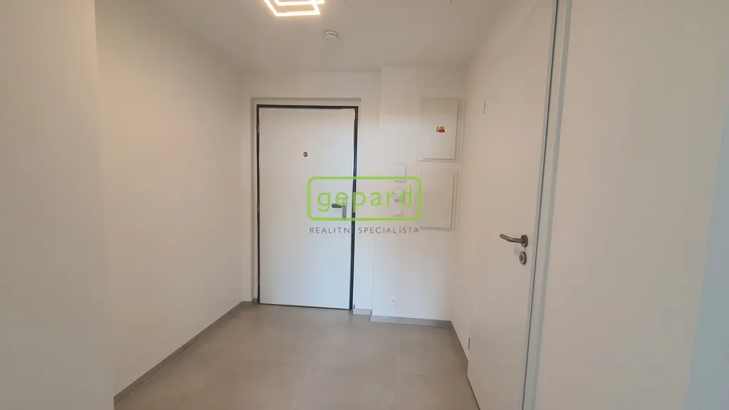 Byt se nachází v 3. NP domu a je orientován na západní stranu. Z předsíně jsou samostatné vstupy do obývacího pokoje s kuchyňským koutem a koupelny společné s WC. Kuchyňská linka je vybavena, sklokeramickou deskou, troubou a lednicí. Koupelna je se sprchovým koutem. Byt je částečně zařízený, jídelním stolem se dvěma židlemi. Podlahy jsou plovoucí, dekor světlý, plastová okna s trojskly, dveře a zárubně dveří s bílým dekorem a vstupní protipožární dveře s ocelovou zárubní. Velmi praktický je i zasklený balkon. Výhodou je optická síť až do domu pro internet, telefon a kabelovou televizi. Záloha na služby ve výši 4.000, je stanovena vč. zálohy na elektřinu.