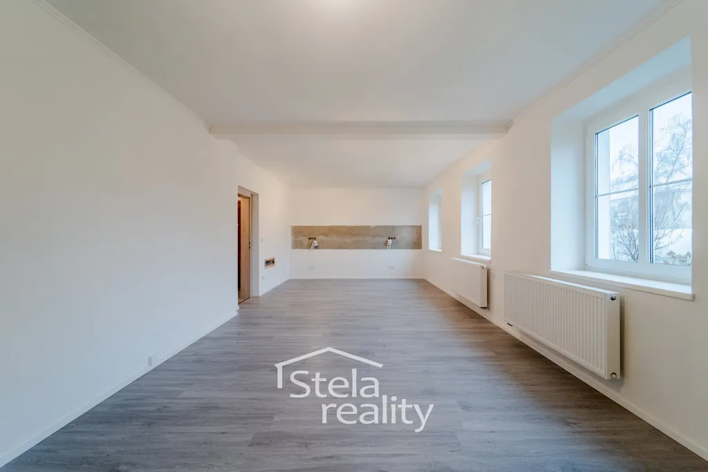 Nabízíme k prodeji byt 3+kk, 84 m², v osobní vlastnictví, na ulici Nová v Bruntále, ve zvýšeném přízemí / dvoupodlažního cihlového domu. Byt je po kompletní rekonstrukci ( dokončena 12/2025) - plastová okna, dveře včetně zárubní, na podlahách v obývacím pokoji vinyl, v ložnici a v pokoji plovoucí podlaha, v koupelně a na chodbě plynové podlahové vytápění , elektroinstalace v mědi. Vytápění a ohřev vody novým plynovým kondenzačním kotlem umístěným ve sklepě. K bytu náleží část půdních prostor a velký sklep (17m²). Dům je po kompletní revitalizaci. Součástí prodeje je garáž (20 m²) a zahrada o výměře 242 m², kde se nachází skleník a kůlna. V klidné a žádané lokalitě u městského parku. V případě zájmu zajistíme financovaní. Makléř doporučuje prohlídku!