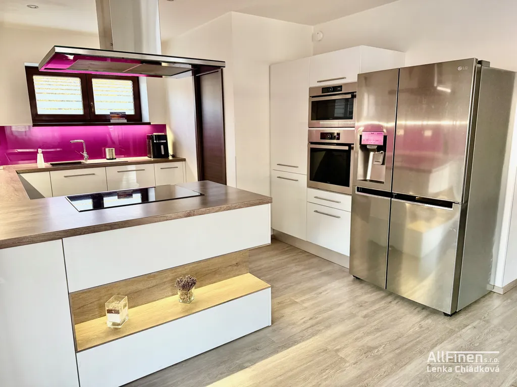 - V kuchyni je kuchyňská linka s vestavěnými spotřebiči: Mikrovlnná trouba zn. Whirlpool, Trouba zn. Whirlpool, Myčka zn. Bauknecht, Indukční deska zn. Whirlpool. Dále je zde Americká lednice zn. LG.
