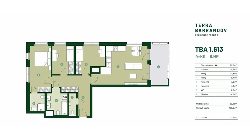 4+kk 103,6 m2 s lodžií 12,6 m2 v 6. nadzemním podlaží
