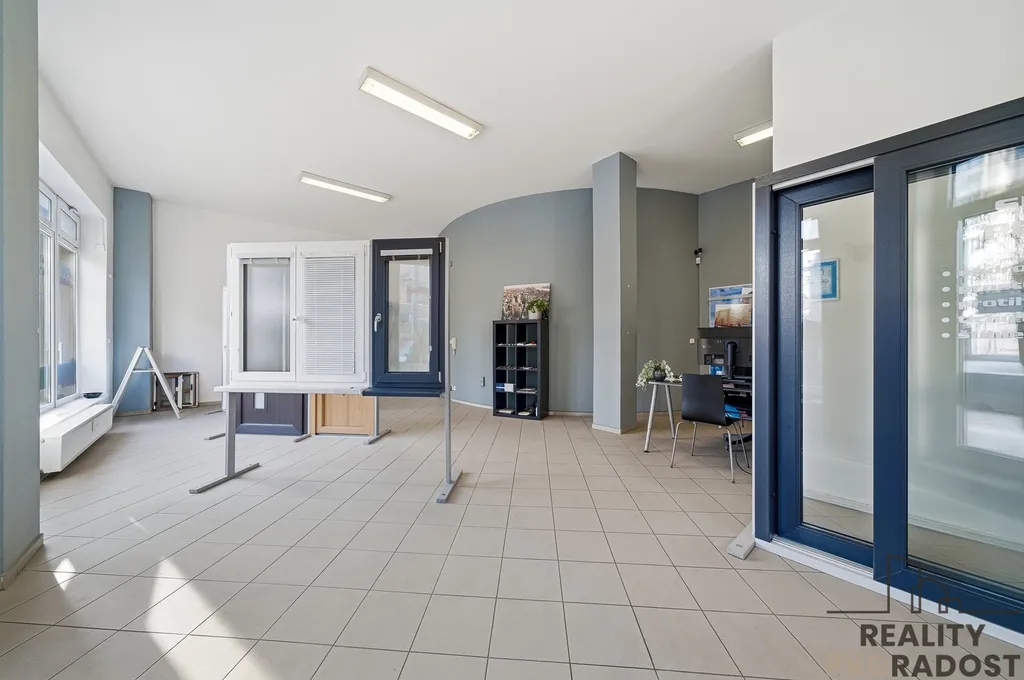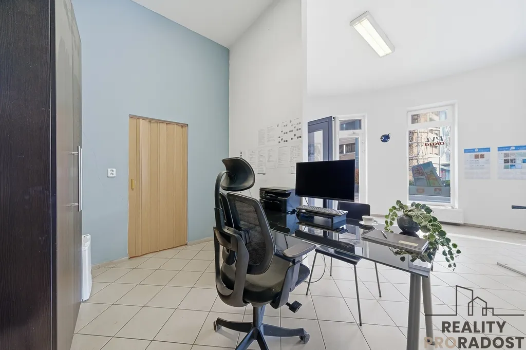 Dispozice zahrnuje hlavní obchodní či kancelářskou část a technickou místnost s umyvadlem a samostatným WC. Vytápění je řešeno dálkově, prostor je vybaven zabezpečovacím zařízením.