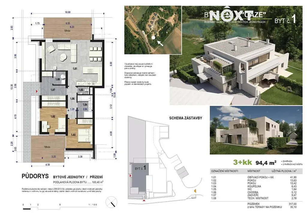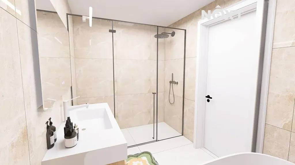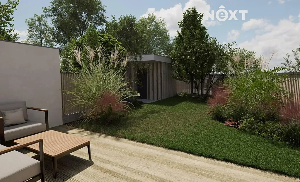 K bytu o velkorysé rozloze 95 m² náleží také vlastní zahrada o velikosti 317 m². Projekt je aktuálně ve výstavbě s plánovaným dokončením na podzim roku 2026. V budově se nacházejí celkem tři bytové jednotky, přičemž každá z nich má svůj vlastní, zcela samostatný vchod, což zajišťuje maximální soukromí.