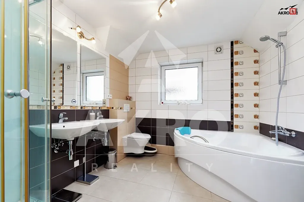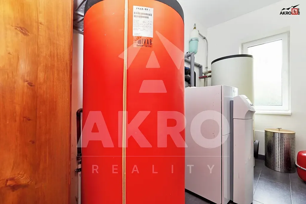 Dispozice: přízemí - vstupní hala, technická místnost s tepelným čerpadlem země/voda pro vytápění a ohřev vody zcela zdarma, pokoj pro hosty - vstup na terasu a zahradu, pracovna, oddělená kuchyně se spíží, prostorný obývací pokoje s krbem, vstupem na terasu a krásnou zahradu.