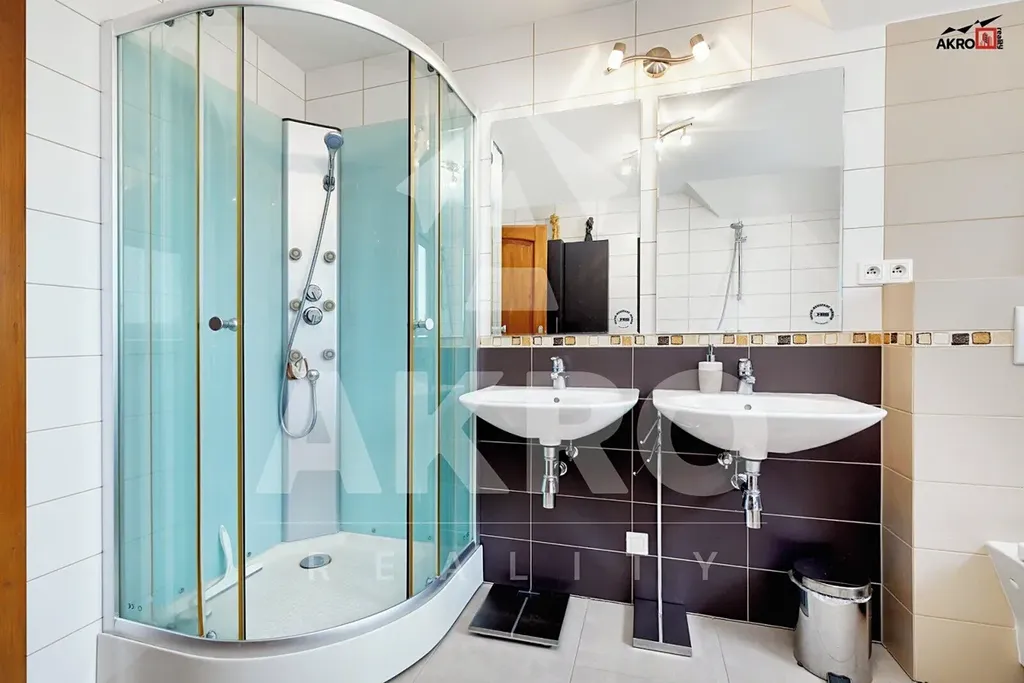 První patro: čtyři pokoje se samostatnými vstupy z centrální chodby, komora, samostatná toaleta, velká koupelna. Dům má vysoké stropy: v přízemí 2,80m a v patře 2,40m, je kompletně zateplen, v přízemí domu podlahové vytápění. Interiér (dveře, zárubně, podlahy a schodiště - vše z přírodních materiálů).