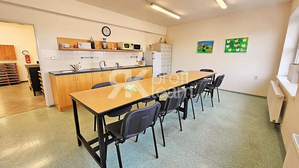 Samozřejmostí jsou šatny pro zaměstnance, sociální zařízení a jídelna.
