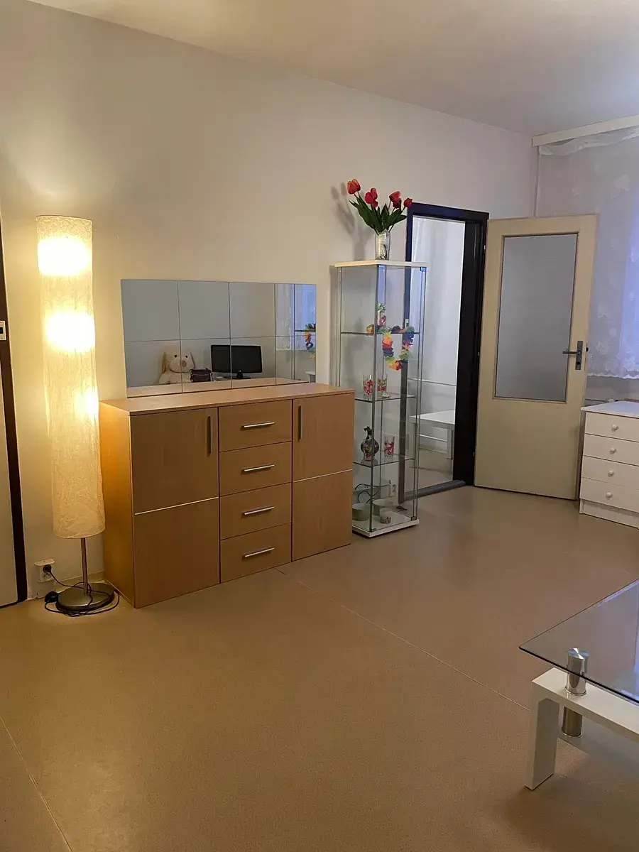 Nabízíme vám pěkný, světlý a panelový byt 3+1 , který je částečně vybaven Byt je po částečné rekonstrukci. K bytu náleží i sklep a k užívání kolárna. Byt se nachází v jižní části Olomouce. Celková obytná plocha bytu je 70 m2, s lodžií. Byt se nachází v 7. nadzemním podlaží (ze 7 podlaží) bytového domu s výtahem. Orientace bytu je na JZ a SV. V bytě je prostorný obývací pokoj, z něj je vstup jak do kuchyně, tak do jednoho z pokojů. Vybavení v OB.P. menší sedačka, skříňka pod televizi, stoleček, policový stěna, komoda. Další pokoj má samostatný vstup z chodby. Kuchyňská linka je základní, lze využít lednici s mrazákem, plynový sporák a pračku, stůl a 2 židle. Koupelna je s umyvadlem a vanou, zrcadlo, nově obložená. Samostatné WC. V ložnici je skříň. Ve druhém pokoji je válenda, komoda. Ve vstupní chodbě jsou vestavěné skříně a věšáková stěna, zrcadlo. Veškerá občanská vybavenost je v nejbližším okolí - restaurace, nákupní centra, obchody, zastávky MHD, autobus i tramvaj. V blízkém okolí ZŠ, MŠ, hřiště, parky, vše v docházkové vzdálenosti. Výborná dopravní dostupnost z dálnice, směr Praha, Brno, Přerov. Prohlídky nemovitosti jsou možné po dohodě, k nastěhování ihned. Cena nájmu je 15,5 tis. Kč + 4560,- Kč za služby + elektřina a plyn(na vaření) dle vlastní spotřeby, a internet. Nájemce si platí přímo u dodavatelů. Vratná kauce 20 tis. Kč a provize pro RK 18 tis. Kč.