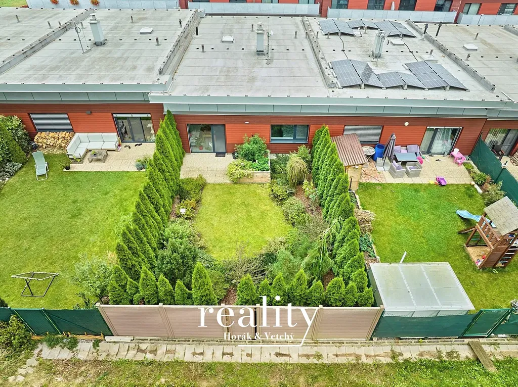 Nabízíme k prodeji moderní řadový rodinný dům 4+kk nacházející se v krásném prostředí v blízkosti přírody u rybníka Borovinka. Jedná se o velmi úspornou budovu (energetická náročnost B), zkolaudovanou v září 2018. Dům je ve špičkovém stavu a k prodeji se nabízí včetně moderního designového nábytku navrženého interiérovým studiem a včetně vestavěných spotřebičů – stačí se jen nastěhovat.