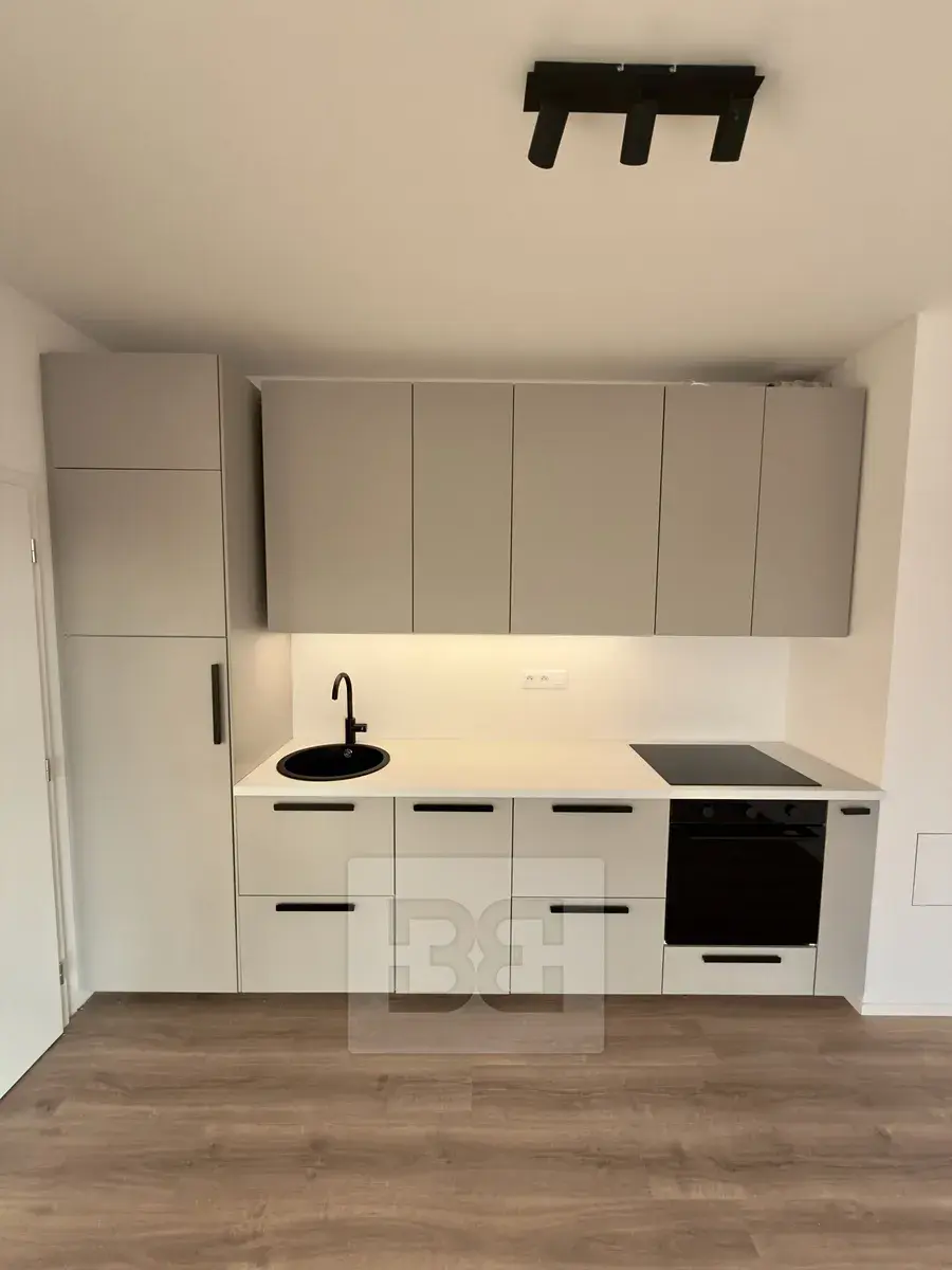 Nabízíme Vám k pronájmu byt 2+kk s obytnou plochou 44 m², situovaný v 1.NP novostavby s výtahem. Byt se sestává ze vstupní chodby, koupelny se sprchovým koutem a toaletou, obývacího pokoje s kuchyňským koutem plně vybaveným vestavnými spotřebiči - indukční varná deska, elektrická trouba, myčka, lednice s mrazákem a ložnice. K bytu náleží terasa přístupná z obou pokojů, na kterou navazuje zatravněná zahrada (ve výstavbě) V ceně pronájmu je garážové stání. Byt je vybaven podlahovým topením, rekuperací a předokenními elektrickými žaluziemi, což zajišťuje uživatelsky příjemné bydlení s ohledem na nízkou energetickou náročnost bytu. Energetický štítek budovy "A"!