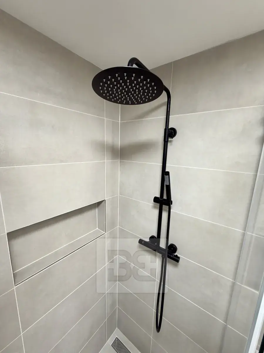 Velkoformátové obklady a sanita v koupelně působí luxusně a elegantně
