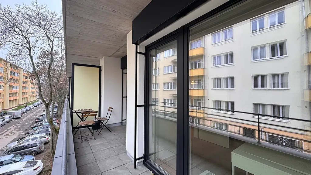 Příjemným benefitem je lodžie s venkovním posezením s orientací na východní stranu, ideální pro ranní kávu nebo večerní posezení s přáteli. K bytu náleží také sklepní kóje a je možnost pronájem parkovacího stání přímo v domě (2.500,- Kč/měsíc).