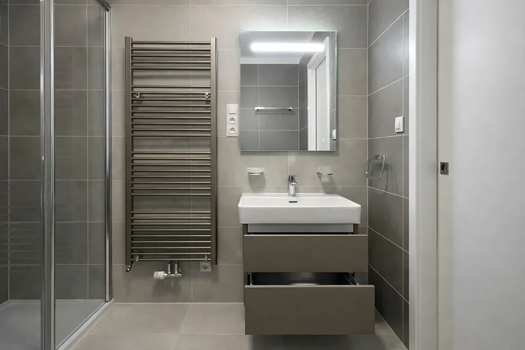 Byt je vybaven bezpečnostními vstupními dveřmi s výsuvnými trny, které zajišťují vyšší míru bezpečí i klidné bydlení.