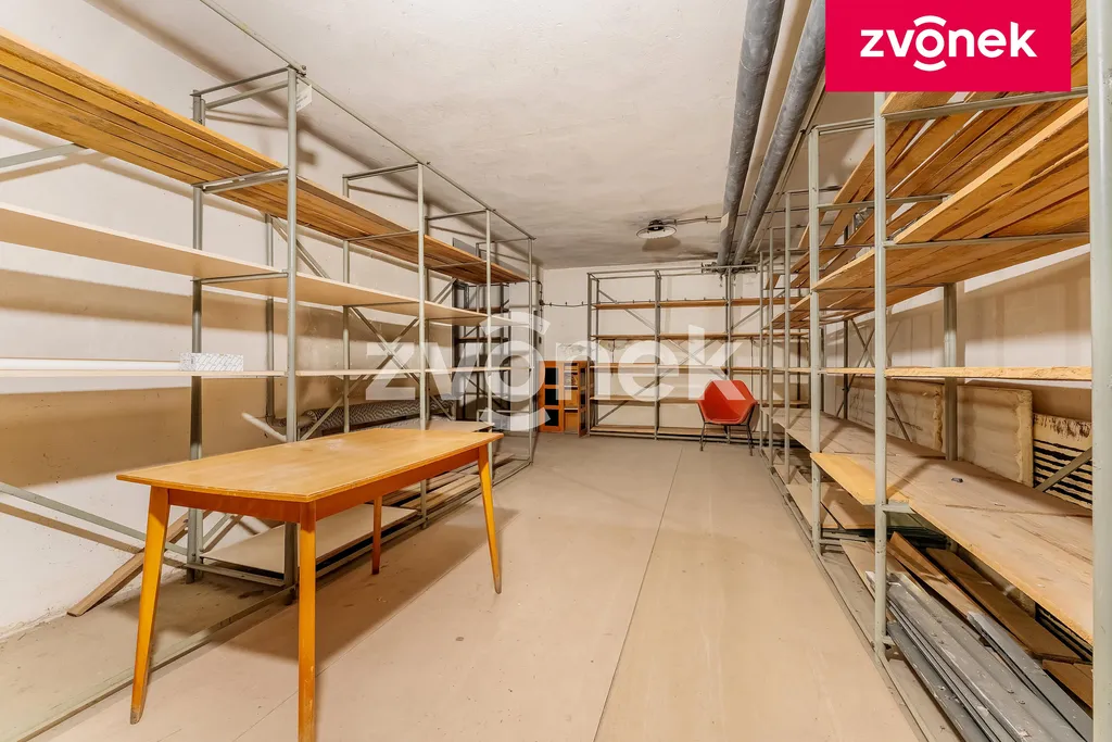 Na jeden z obchodních prostorů navazuje vstup do suterénu, kde se nacházejí rozsáhlé skladovací prostory. Další úložné prostory se pak nacházejí ve sklepě přístupném ze dvora.