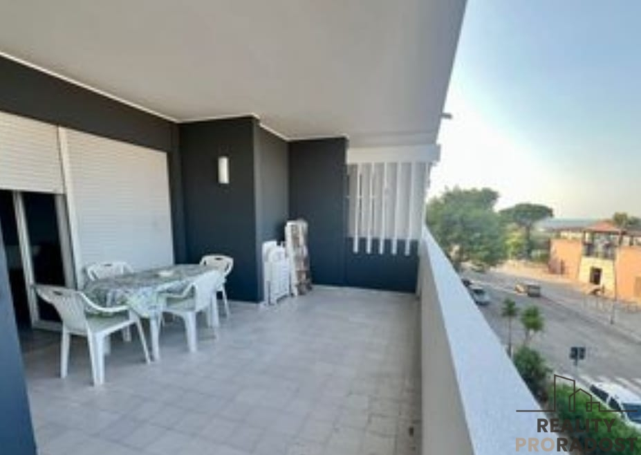 Byt nabízí prakticky řešený interiér, který působí vzdušně a komfortně. Dominantou nemovitosti je prostorná terasa s otevřeným výhledem na moře, ideální místo pro ranní kávu, odpočinek během dne i večerní posezení při západu slunce. Díky své orientaci a vyššímu patru je apartmán krásně prosvětlený a poskytuje příjemný pocit soukromí.