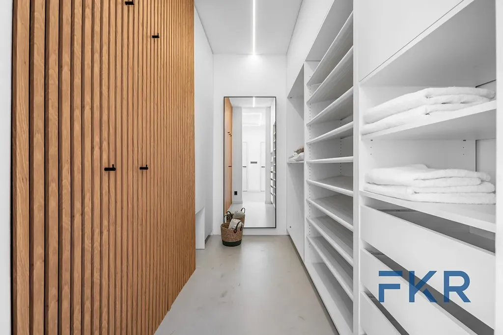 Dispoziční uspořádání bytu odpovídá aktuálním trendům prémiových nemovitostí a nabízí samostatnou ložnici s koupelnou a velkou míru úložných prostor. Dále dva samostatné dětské pokoje (17 m² a 13,4 m²), druhou koupelnu, toaletu, technickou místnost pro pračku a sušičku, průchozí zónu pro pracovnu, komoru na domácí pomocníky a velkou šatnu ve vstupní chodbě.