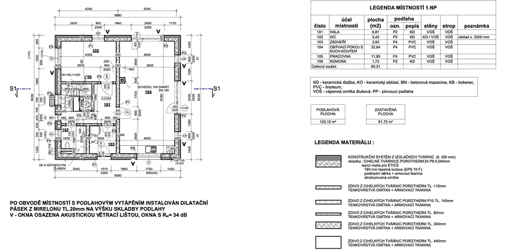 Nabízený rodinný dům je určen pro pohodlný život 4-5 členné rodiny. Dispozice 5+KK nabízí užitnou plochu 122 m². Bohatý vnitřní prostor zahrnuje v přízemí obývací pokoj spojený s kuchyňským koutem, dále pokoj pro hosty nebo pracovnu, zádveří, předsíň, koupelnou se sprchovým koutem a WC, komoru. Po pohodlném dvouramenném betonovém schodišti vystoupáte do 2. patra, kde se nachází ložnice a 2 dětské pokoje, samostatná koupelna s rohovou vanou a WC. Z části galerie může být např. šatna. Pro zvýšení obytného prostoru je možné za příplatek vytvořit další 2 pokoje v podkroví, čímž se může zvýšit plocha domu až na 152 m2. Dům je stavebně povolen s tepelným čerpadlem s podlahovým vytápěním, krbovým komínem, hromosvodem a podlahovými krytinami ve variantě vinylu nebo keramické dlažby. Do domu může být přiveden i plyn.