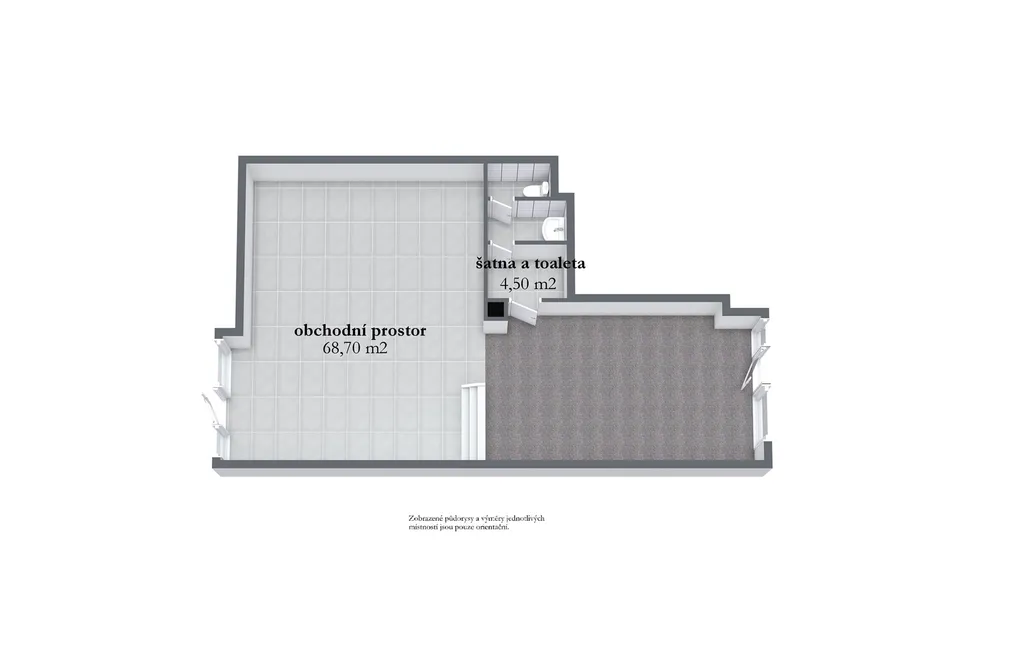 hlavní obchodní prostor: 68,7 m²