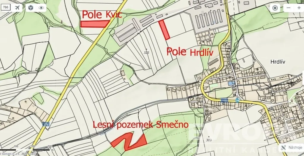 Prodej pozemků u obce Slaný celkem 17665m2. Jedná se o prodej orné půdy o velikosti 2835m2 v katastru Hrdlív a 5579m2 v katastru Kvíc. Dále 9251m2 lesa v katastru Smečno. Vše v okolí města Slaný. Prodej jen komplet.