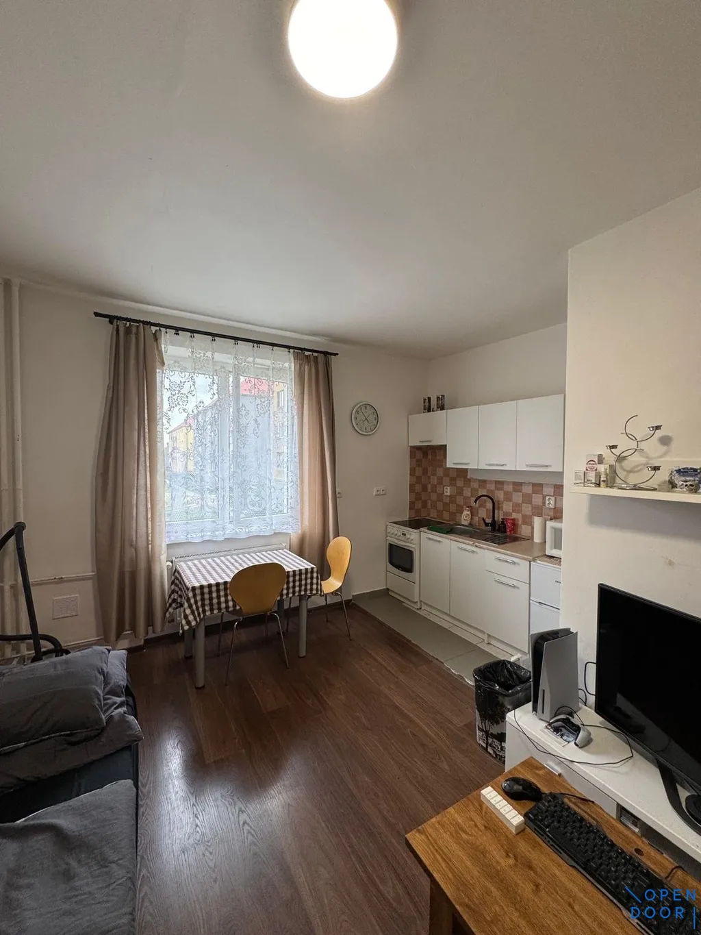 Byt má dispozici 1+kk, podlahovou plochu 21,2 m2 a nachází se v přízemí bytového domu. Byt prošel částečnými úpravami a nabízí velký prostor pro obývací pokoj s kuchyňským koutem. Kuchyň je zařízená kuchyňskou linkou s elektrickým sporákem, pokoj s okny do zahrady, která je oplocena a slouží pouze obyvatelům bytového domu, dále koupelna se sprchovým koutem a toaletou.