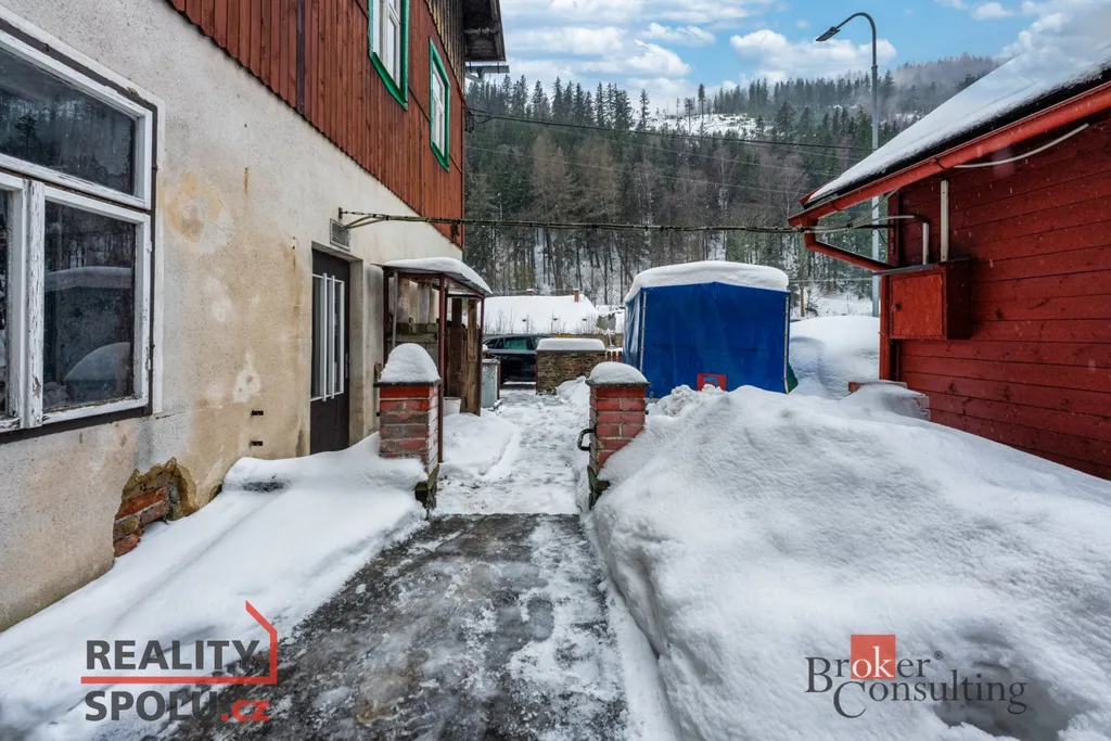 Dům má dvě nadzemní podlaží, půdní prostor s možností dalšího využití a také sklep. Součástí nemovitosti je rovněž přístavba s dílnou, kterou lze ideálně využít například jako lyžárnu, kolárnu nebo sklad sportovního vybavení, což je v horské lokalitě velkou výhodou.