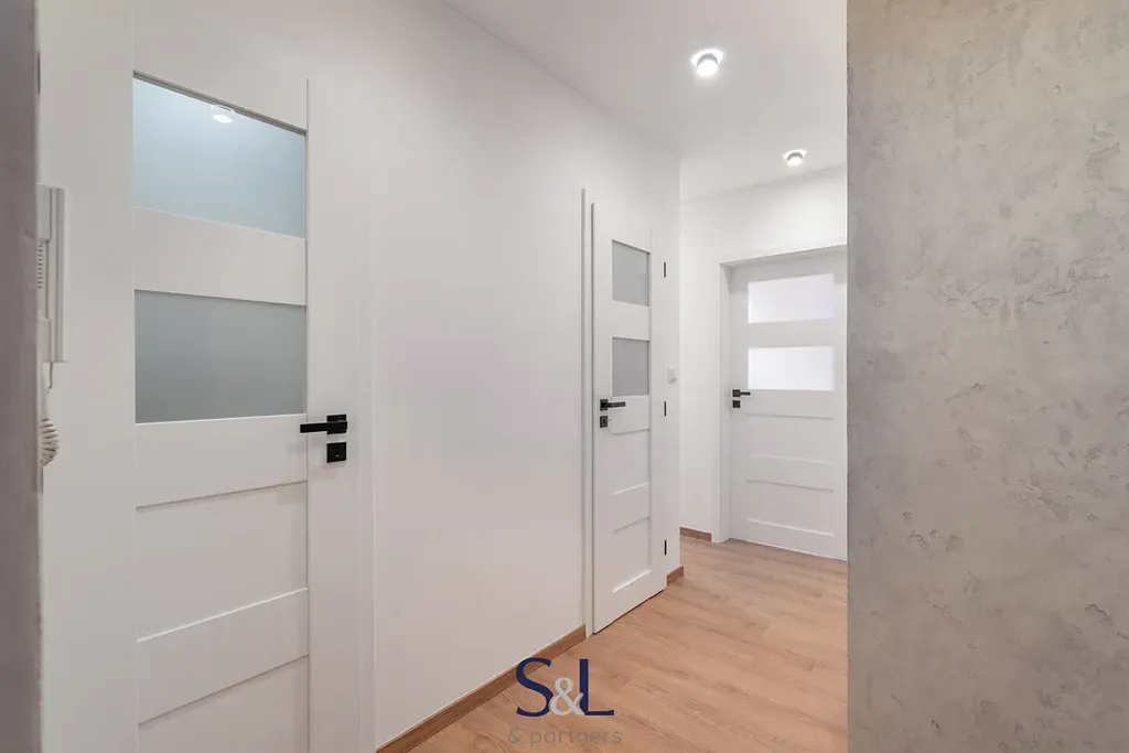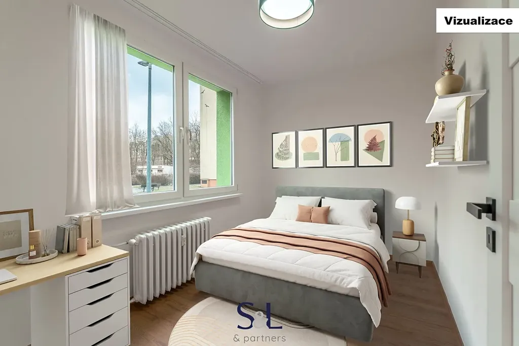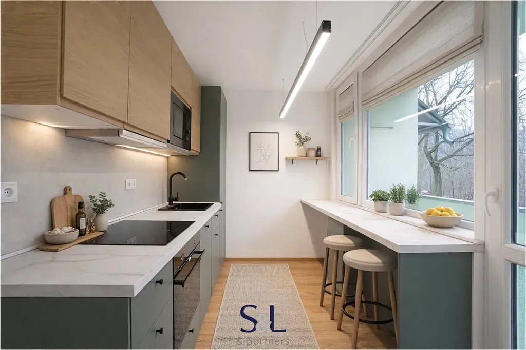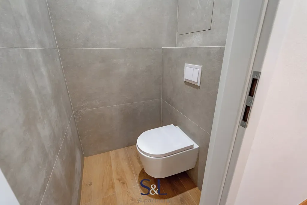Dispozice bytu nabízí prostorný obývací pokoj, ložnici, kuchyni s novou kuchyňskou linkou a vstupem na lodžii, luxusní koupelnu se sprchovým koutem, samostatnou toaletu a komoru.