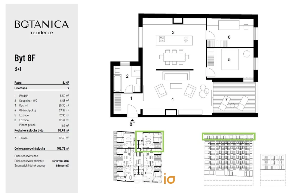 Nabízíme Vám bytové jednotky 3+1 o celkové ploše 108,8 m2. V interiérech pracujeme s prvotřídními přírodními materiály, které jsou zárukou vysoké kvality a nadčasového designu. Prostor zde mají moderní prvky jako je příprava pro chytrou domácnost.