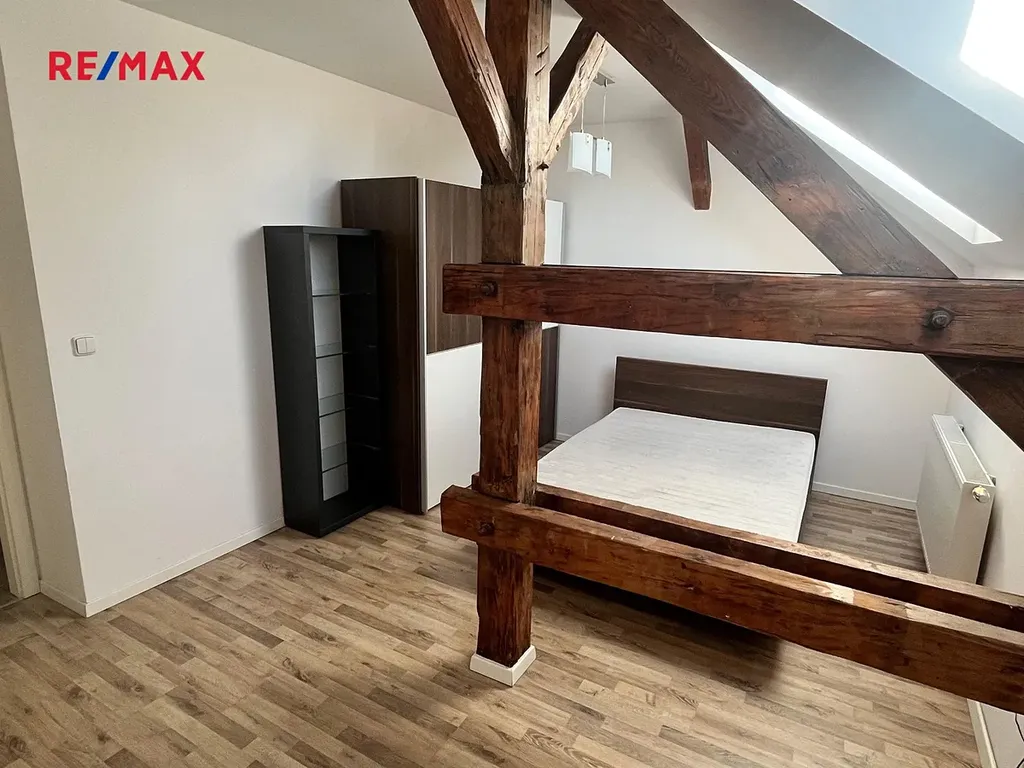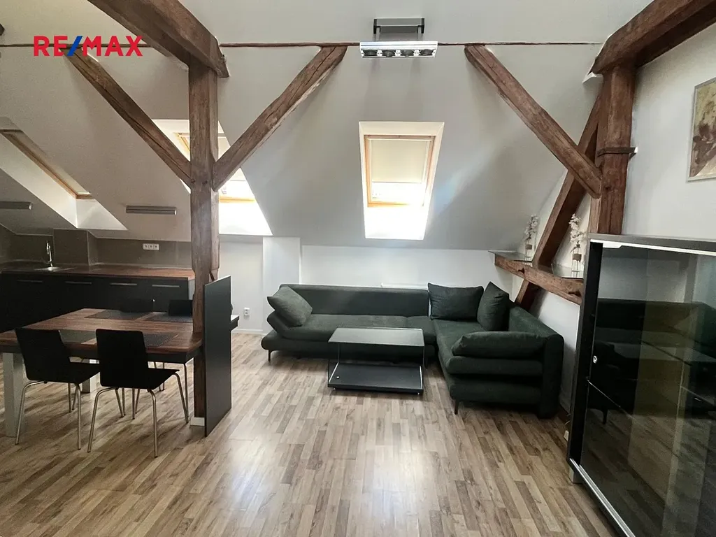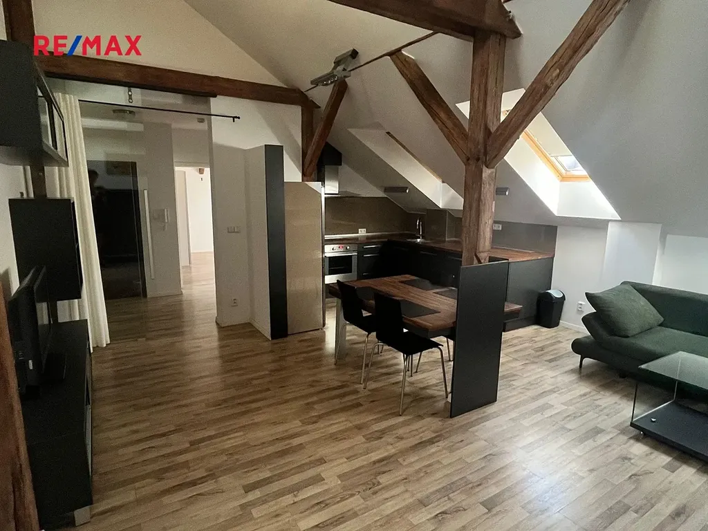 Velmi vkusně a precizně rekonstruovaný podkrovní byt s dispozicí 3+kk o výměře cca 80 m2 se nachází v 5. nadzemním podlaží v cihlového domu bez výtahu v centru Plzně ve Škroupově ulici.