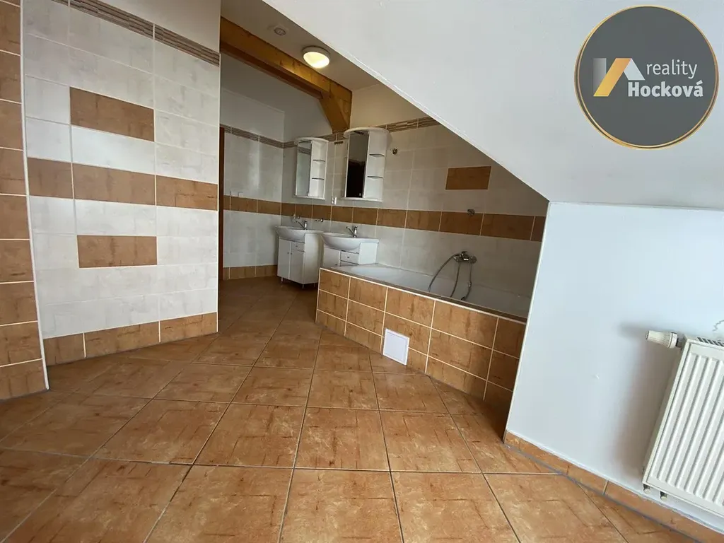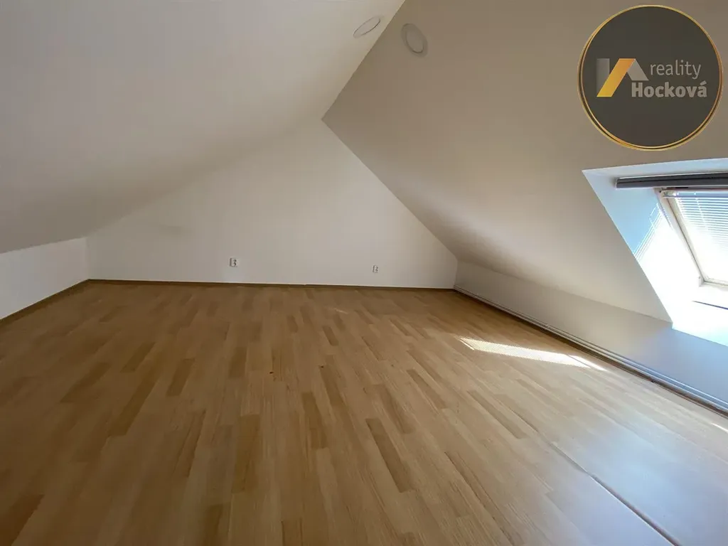 Nabízíme Vám k pronájmu půdní byt o velikosti 3+kk + 2 menší pokoje v podkroví (145,5m2) s parkováním v garáži na pozemku za el. ovladatelnou branou. V klidné části Kladna, ulice Máchova. Byt se nachází v 1. patře bez výtahu. Dispozice: vstup z předsíně do koupelny s dvojumyvadlem a vanou, samostatné WC, prostorný a světlý obývací pokoj s kuchyní, vstup do 2 samostatných pokojů. Z obývacího pokoje je vstup po točitém schodišti do patra kde jsou 2 menší pokoje. V kuchyni je vestavěná trouba, digestoře, sklokeramická deska, lednice s mrazákem a místo pro myčku (která není součástí). Byt je velmi světlý. Měsíční nájemné 20.000,- včetně garáže + služby 5.000,-. Elektřina se přehlašuje na nájemce. Vratná kauce 40.000,- + rezervace/provize ve výši měsíčního nájmu. Volný od 1.4.2026. Pro více informací volejte na tel.