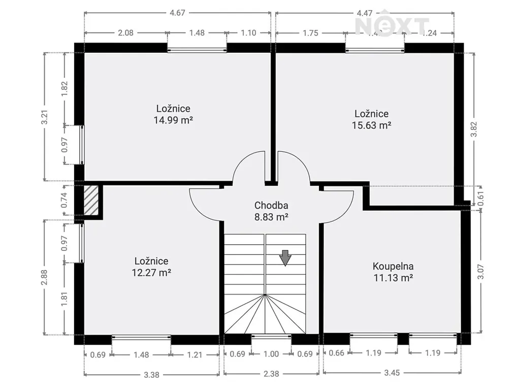 O vysoký komfort bydlení se stará elektrické podlahové vytápění, venkovní žaluzie a velmi nízké provozní náklady.