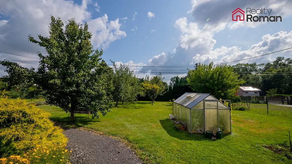 Součástí domu je rozlehlá a pečlivě udržovaná zahrada s ovocnými stromy, okrasnými keři, zeleninovými záhony, skleníkem, hospodářskou budovou a venkovním krbem. Zahrada nabízí příjemné soukromí a dostatek prostoru pro relaxaci i zahrádkářské využití.