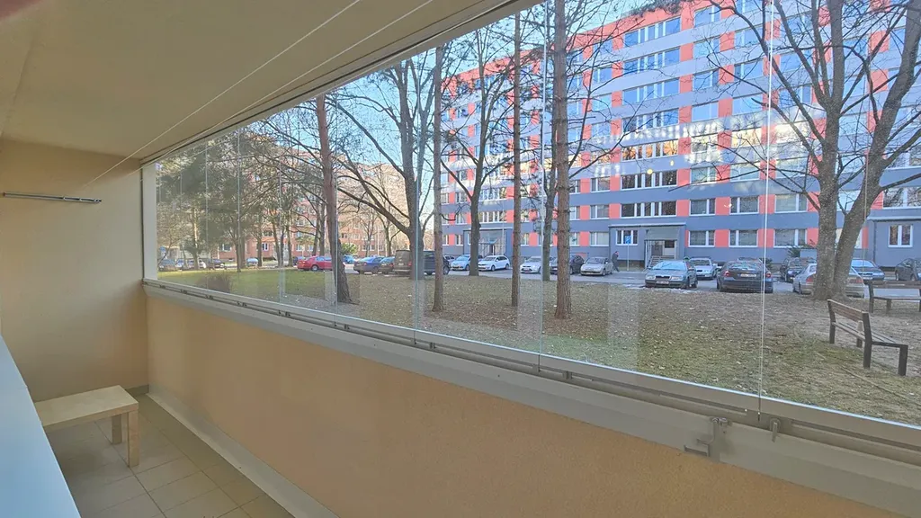 Z obývacího pokoje je vstup na prostornou zasklenou lodžii s příjemným výhledem do zeleně. Obývací pokoj je propojen s kuchyňským koutem. Kuchyň praktická s úložnými prostory a dostatkem pracovní plochy. Je zde i pamatováno na místo pro pračku.